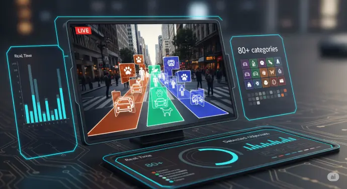 系统支持对人、车、宠物等80多种目标类别进行实时检测和分类。它还具备区域检测与虚拟线框报警、镜头脱落检测等功能。