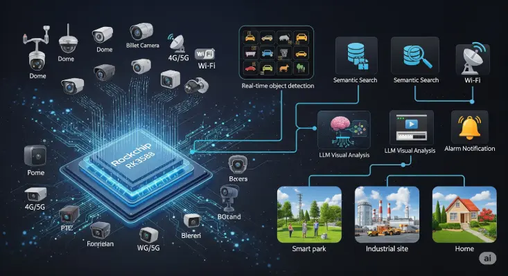 典型应用场景包括智能园区(非授权车辆告警)、智能社区(出入口识别)、工业监控(高危区域入侵检测)、商业安防(客流统计)、智慧城市(车牌匿名化处理)和家庭安防(老人跌倒检测)等。