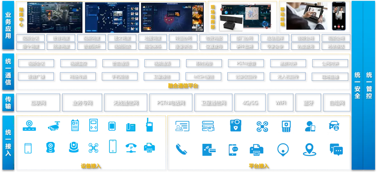 系统能够无缝整合多种通信方式,包括有线、无线、集群、视频会议、移动通信、卫星电话、短信、传真、即时消息等。它支持将不同通信系统的声音、数据、视频和图片等信息进行融合,打破通信壁垒和信息孤岛。